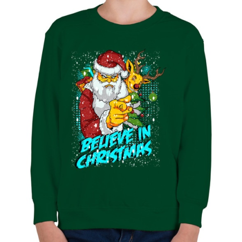1 kép PRINTFASHION Hiszek a Karácsonyban - Gyerek pulóver - Sötétzöld