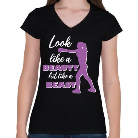 1 kép PRINTFASHION Hit like a beast - Női V-nyakú póló - Fekete