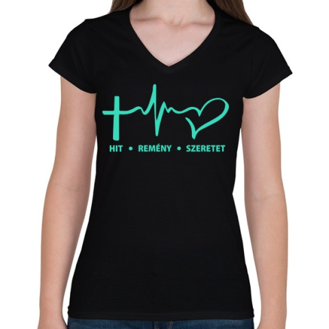 1 kép PRINTFASHION Hit, remény, szeretet - Női V-nyakú póló - Fekete