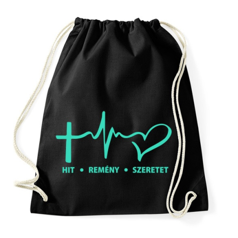 1 kép PRINTFASHION Hit, remény, szeretet - Sportzsák, Tornazsák - Fekete