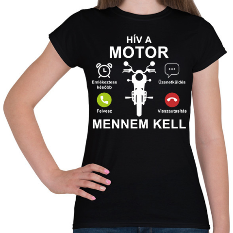 1 kép PRINTFASHION Hív a motor mennem kell - Női póló - Fekete