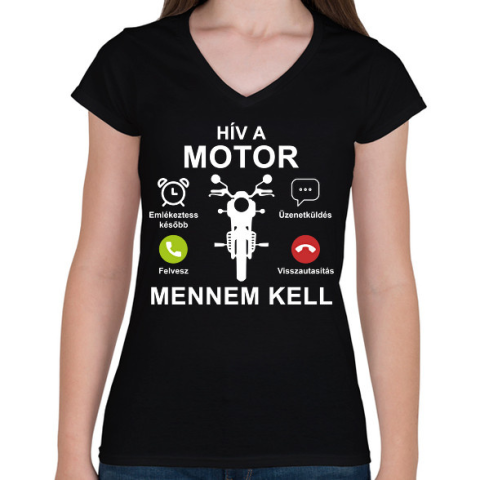 1 kép PRINTFASHION Hív a motor mennem kell - Női V-nyakú póló - Fekete