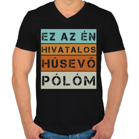 1 kép PRINTFASHION Hivatalos húsevő póló - Férfi V-nyakú póló - Fekete