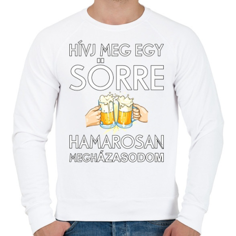 1 kép PRINTFASHION Hivj meg egy sörre, hamarosan megházasodom - Férfi pulóver - Fehér