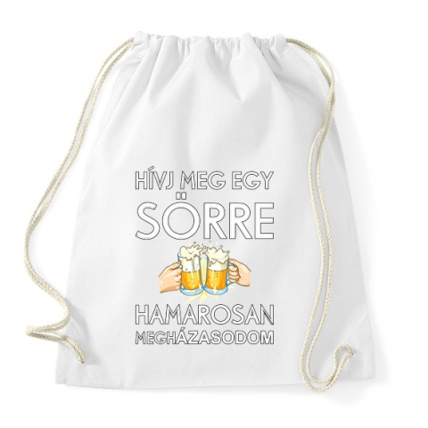 1 kép PRINTFASHION Hivj meg egy sörre, hamarosan megházasodom - Sportzsák, Tornazsák - Fehér