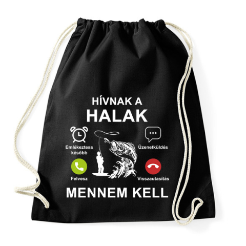 1 kép PRINTFASHION Hívnak a halak mennem kell - Sportzsák, Tornazsák - Fekete