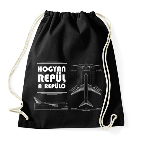 1 kép PRINTFASHION Hogyan repül a levegő - Sportzsák, Tornazsák - Fekete