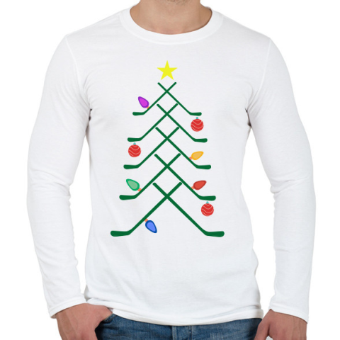 1 kép PRINTFASHION Hoki karácsonyfa - Férfi hosszú ujjú póló - Fehér