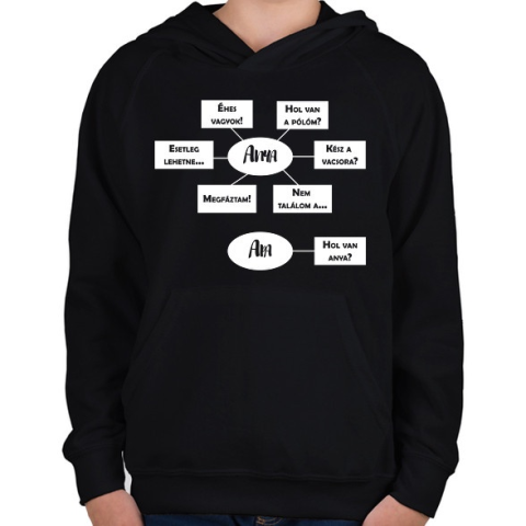 1 kép PRINTFASHION Hol van anya? - Fehér - Gyerek kapucnis pulóver - Fekete