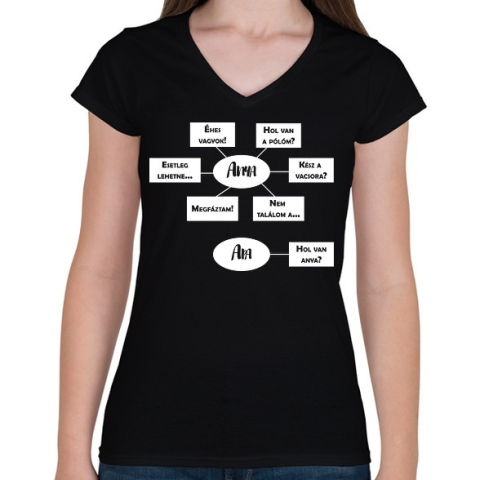 1 kép PRINTFASHION Hol van anya? - Fehér - Női V-nyakú póló - Fekete