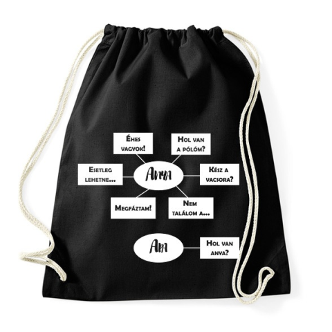 1 kép PRINTFASHION Hol van anya? - Fehér - Sportzsák, Tornazsák - Fekete