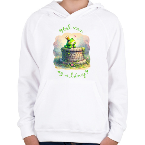 1 kép PRINTFASHION Hol van az a lány? - Gyerek kapucnis pulóver - Fehér