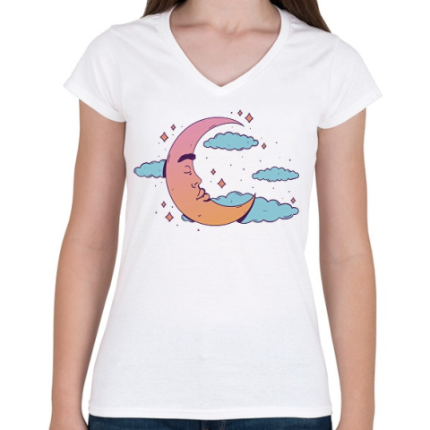 1 kép PRINTFASHION Hold - Női V-nyakú póló - Fehér