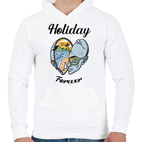 1 kép PRINTFASHION Holiday forever - Nyaralás - Férfi kapucnis pulóver - Fehér