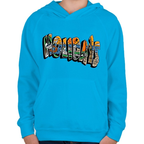 1 kép PRINTFASHION HOLIDAYS - Gyerek kapucnis pulóver - Azúrkék
