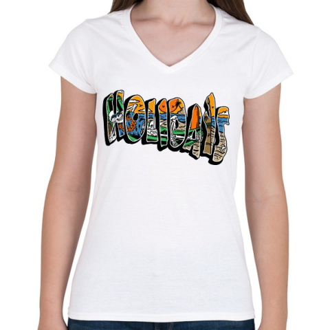 1 kép PRINTFASHION HOLIDAYS - Női V-nyakú póló - Fehér