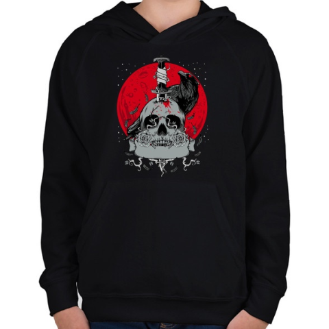 1 kép PRINTFASHION Holló és koponya - Gyerek kapucnis pulóver - Fekete