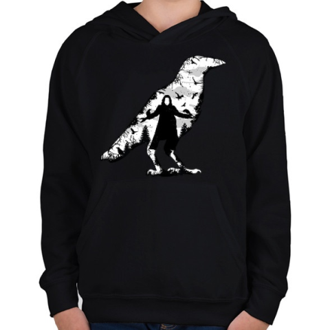 1 kép PRINTFASHION Holló - Gyerek kapucnis pulóver - Fekete