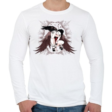 1 kép PRINTFASHION Holló lány - Férfi hosszú ujjú póló - Fehér