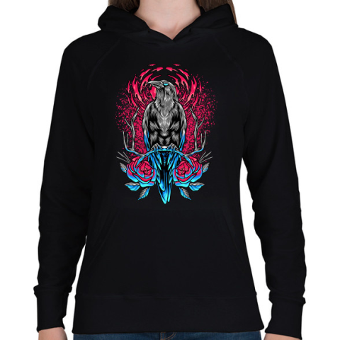 1 kép PRINTFASHION Holló - Női kapucnis pulóver - Fekete