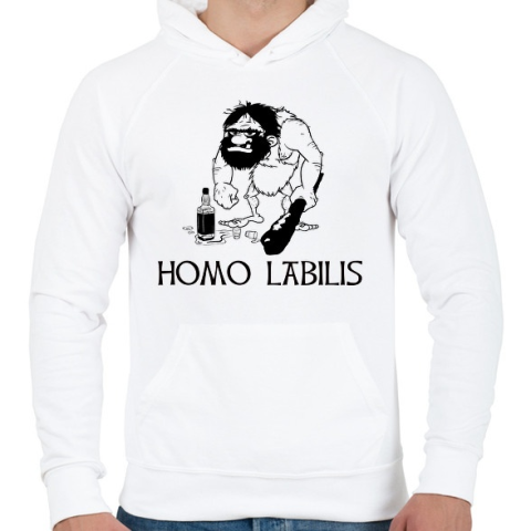 1 kép PRINTFASHION homo labilis - Férfi kapucnis pulóver - Fehér