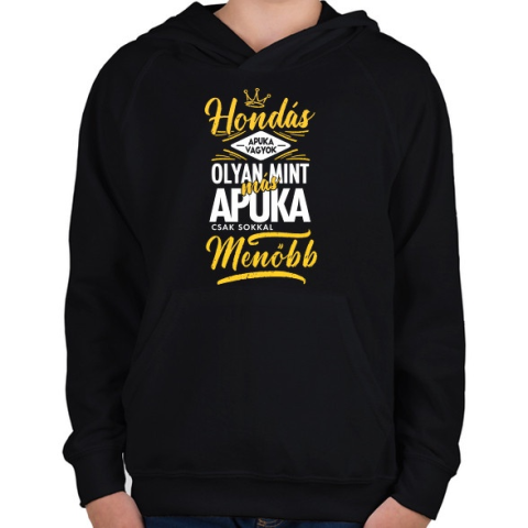 1 kép PRINTFASHION Hondás apuka - Gyerek kapucnis pulóver - Fekete