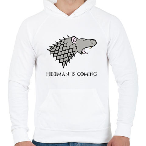 1 kép PRINTFASHION Hooman is coming - Férfi kapucnis pulóver - Fehér