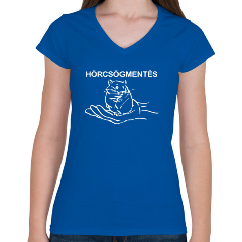 1 kép PRINTFASHION Hörcsögmentés - Női V-nyakú póló - Királykék