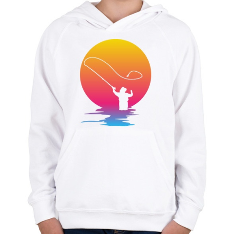 1 kép PRINTFASHION Horgász a naplementében - Gyerek kapucnis pulóver - Fehér