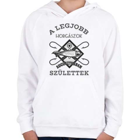 1 kép PRINTFASHION Horgász augusztus - Gyerek kapucnis pulóver - Fehér