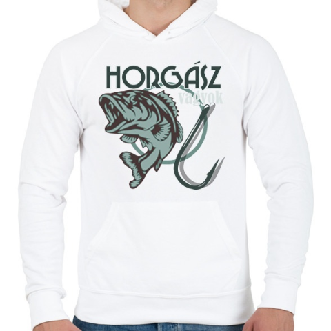 1 kép PRINTFASHION horgász - Férfi kapucnis pulóver - Fehér