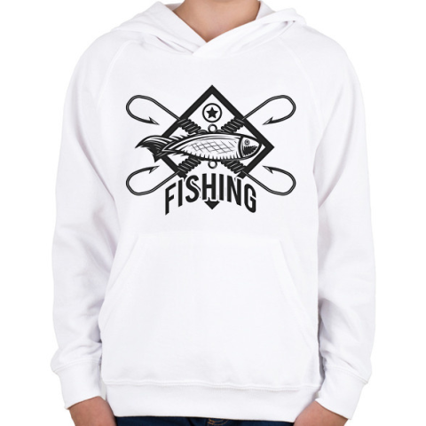 1 kép PRINTFASHION horgász - Gyerek kapucnis pulóver - Fehér