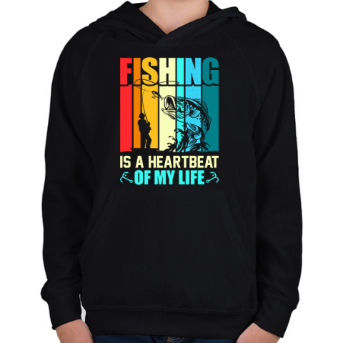 1 kép PRINTFASHION horgász - Gyerek kapucnis pulóver - Fekete