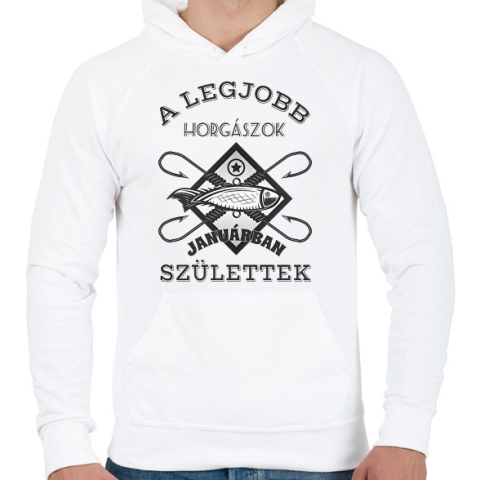 1 kép PRINTFASHION Horgász január - Férfi kapucnis pulóver - Fehér