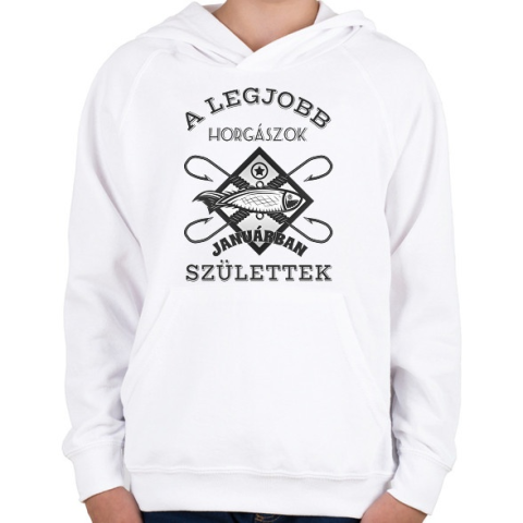 1 kép PRINTFASHION Horgász január - Gyerek kapucnis pulóver - Fehér