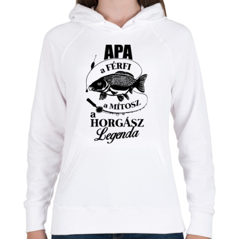 1 kép PRINTFASHION Horgász Legenda - Női kapucnis pulóver - Fehér