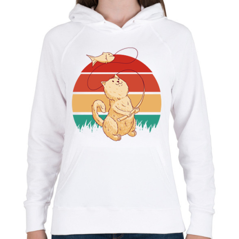 1 kép PRINTFASHION Horgász macska - Női kapucnis pulóver - Fehér