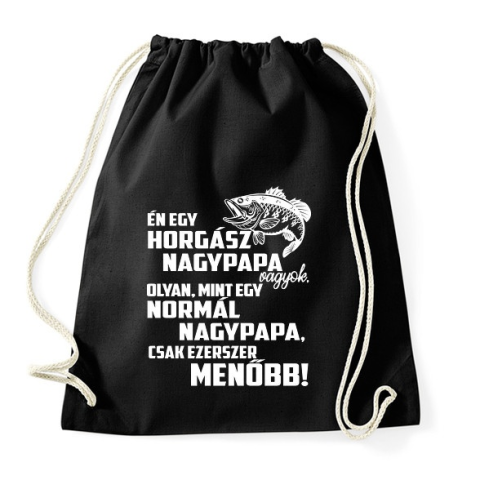 1 kép PRINTFASHION Horgász nagypapa - Sportzsák, Tornazsák - Fekete