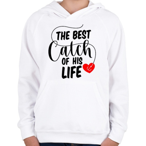 1 kép PRINTFASHION Horgász páros - a legjobb fogás - Gyerek kapucnis pulóver - Fehér
