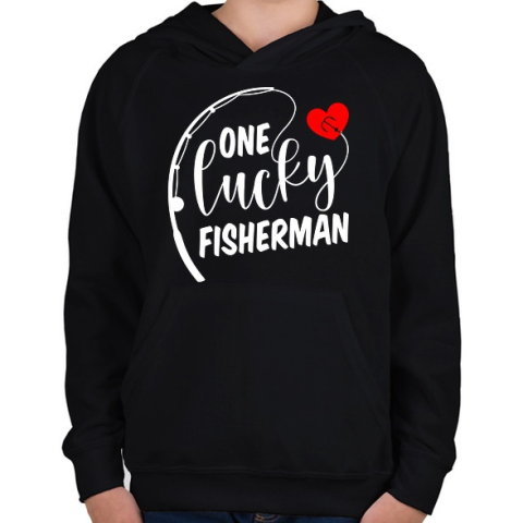 1 kép PRINTFASHION Horgász páros -egy szerencsés horgász 2 - Gyerek kapucnis pulóver - Fekete
