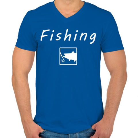 1 kép PRINTFASHION Horgászat - Férfi V-nyakú póló - Királykék