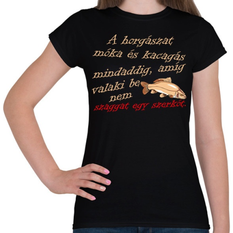 1 kép PRINTFASHION Horgászat móka és kacagás - Női póló - Fekete