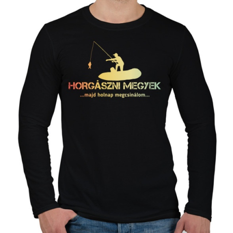1 kép PRINTFASHION Horgászni megyek majd holnap megcsinálom - Férfi hosszú ujjú póló - Fekete
