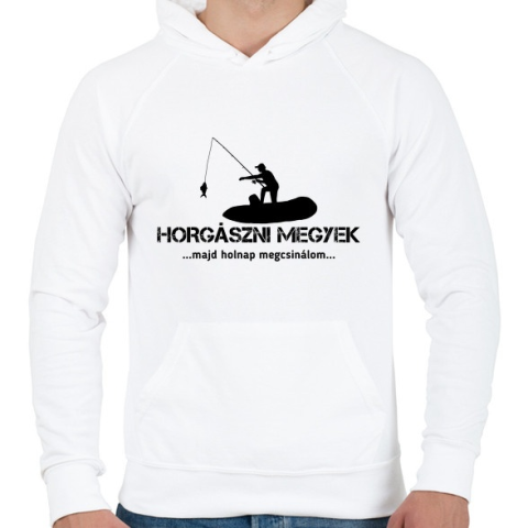 1 kép PRINTFASHION Horgászni megyek majd holnap megcsinálom - Férfi kapucnis pulóver - Fehér
