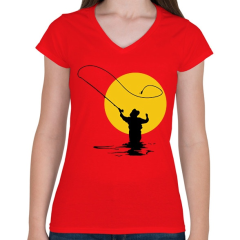 1 kép PRINTFASHION Horgászok ásza - Női V-nyakú póló - Piros
