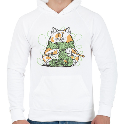 1 kép PRINTFASHION Horgoló macska - Férfi kapucnis pulóver - Fehér