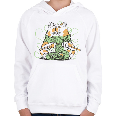 1 kép PRINTFASHION Horgoló macska - Gyerek kapucnis pulóver - Fehér