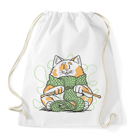 1 kép PRINTFASHION Horgoló macska - Sportzsák, Tornazsák - Fehér