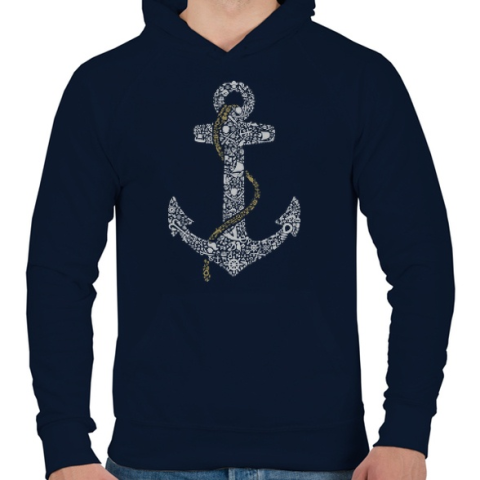 1 kép PRINTFASHION Horgony - Férfi kapucnis pulóver - Sötétkék
