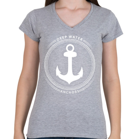1 kép PRINTFASHION Horgony - Női V-nyakú póló - Sport szürke